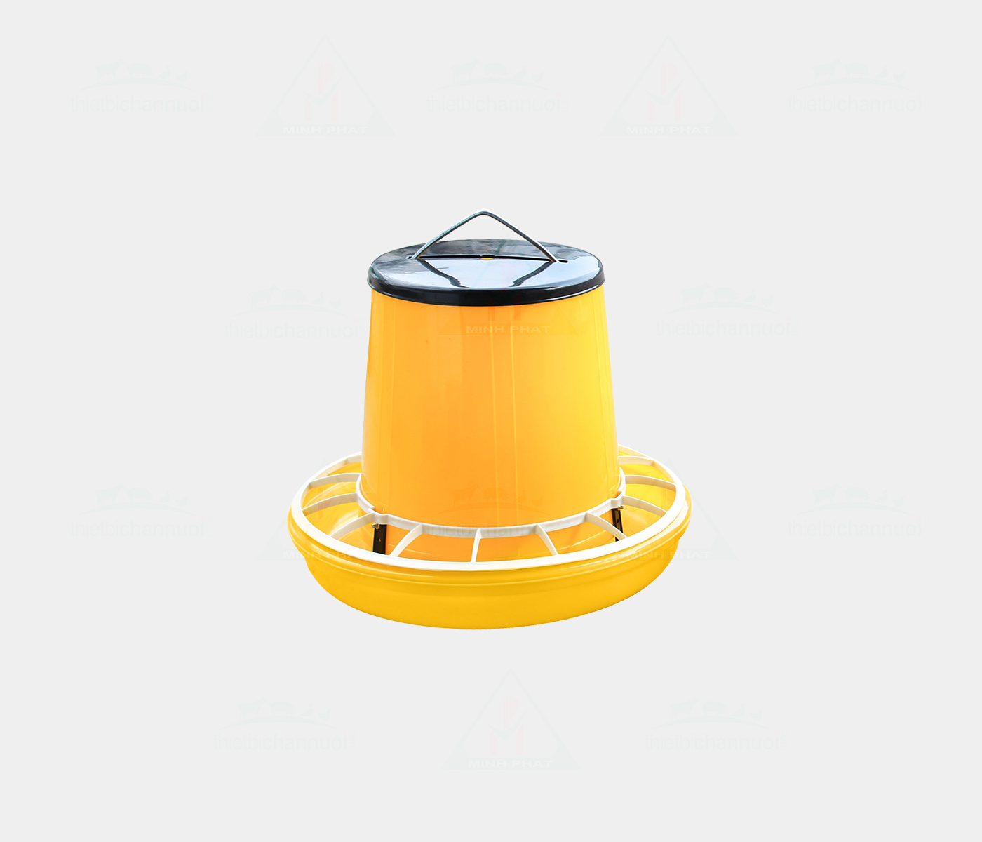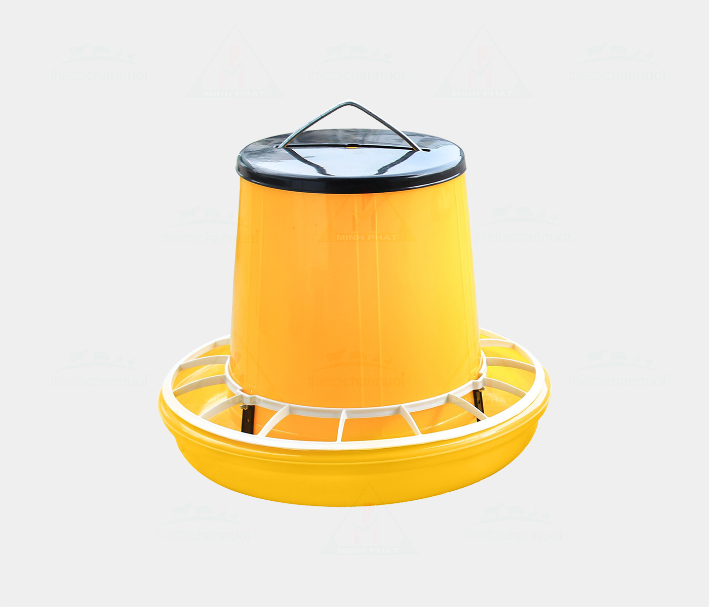 Máng ăn chia ô cho gia cầm: Sản phẩm được cải tiến từ máng ăn treo truyền thống, liên kết giữa đáy và thân bằng chân nhựa, vành chia ô, nắp đậy